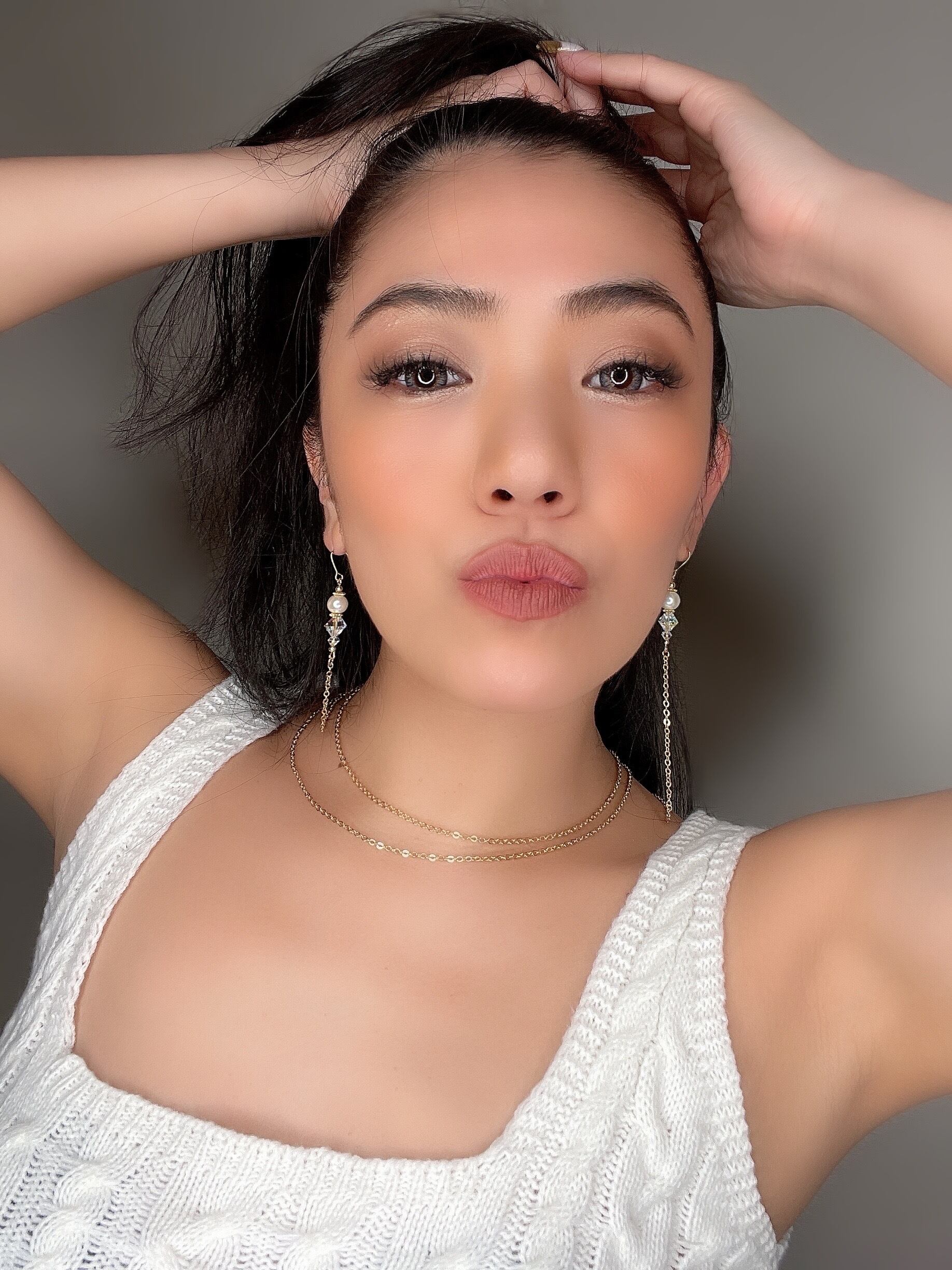 細めのゴールドチェーンと、パール&クリスタルが放つ優しい色合いが、首元をより女性らしくしてくれます♪さりげなくSexyに...